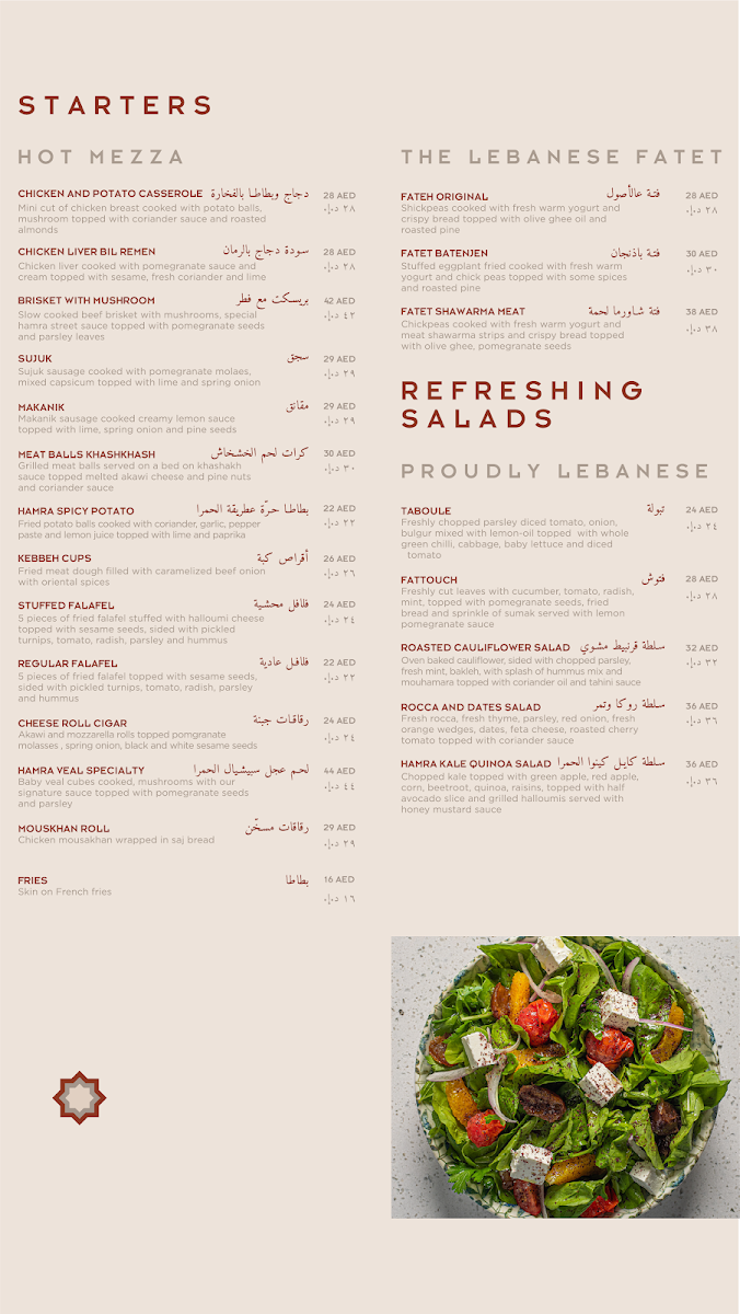 Al Hamra Street Restaurant, nestled in Al Barsha, Dubai, is a culinary gem celebrated for its authentic Lebanese cuisine. Diners are welcomed with genuine hospitality, making it an inviting spot for both casual meals and special occasions. The menu boasts a delightful array of dishes, from the renowned falafel and generous mezze to perfectly grilled kebabs and decadent baklava. Patrons rave about the freshness and flavor that each dish brings. With attentive service and a warm atmosphere, Al Hamra Street Restaurant guarantees a memorable dining experience—perfect for anyone in search of true Lebanese flavors.