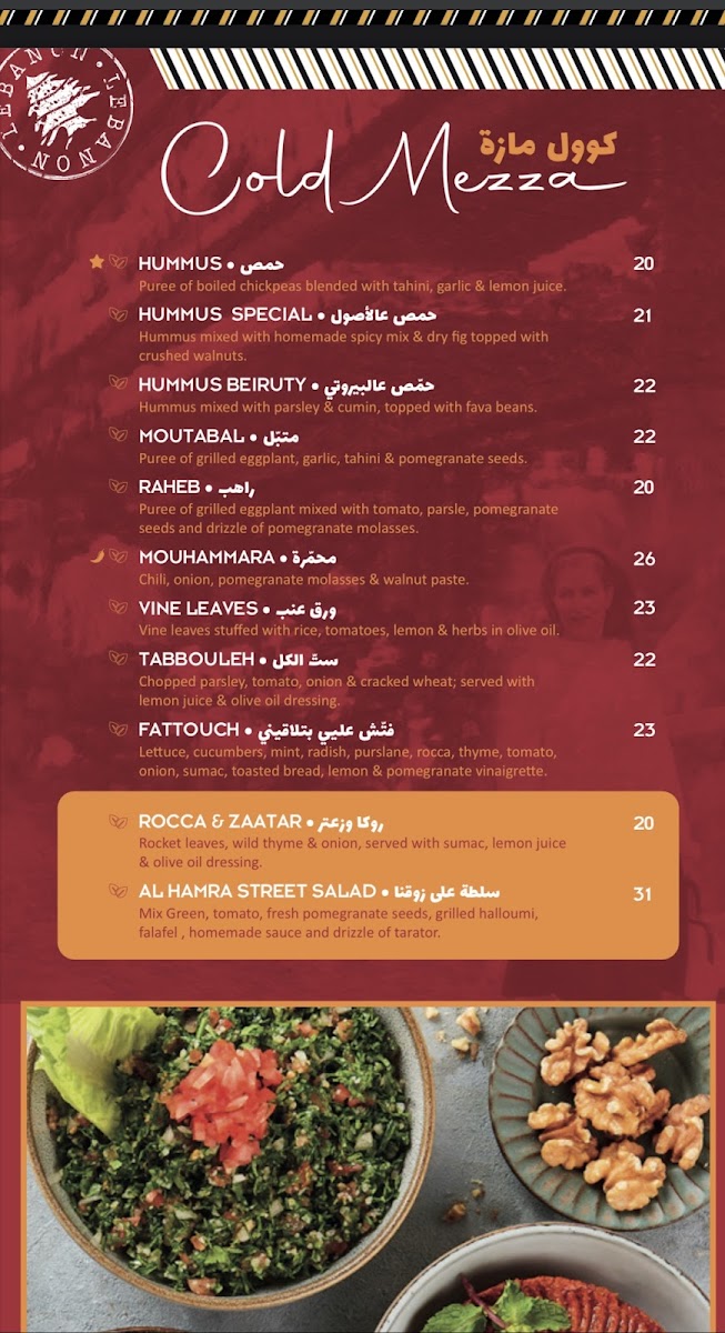 “ I had an amazing experience at Al Hamra Street restaurant..The atmosphere is warm and inviting, perfect for a casual dinner or a special occasion. The menu offers a fantastic variety of authentic Lebanese dishes. I highly recommend the hummus and tabbouleh—both were fresh and bursting with flavor. The shawarma was tender and seasoned to perfection. Service was top-notch; our server was friendly and attentive without being intrusive. I also appreciated the lovely selection of traditional desserts; the baklava was a highlight! Overall, a must-visit for anyone craving delicious Lebanese cuisine. Can’t wait to go . Highly recommended ”